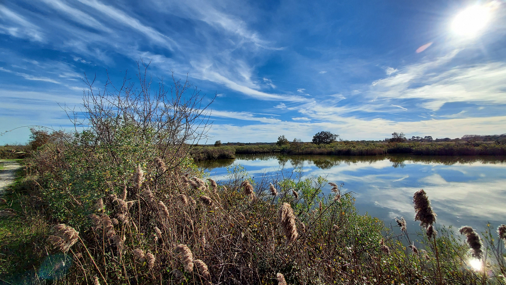 (…) En effet, notre randonnée prévoit de longer la l’Eyre, qui ayant largement débordé, nous oblige, à devoir contourner de nombreux passages inondés, au prix de difficultés et de nombreuses griffures de la carrosserie, par les ronces. Ces contournements à n’en plus finir, les pieds et mollets trempés, autant emprunter le sentier submergé, transformé par endroits en ruisseau à eaux vives ! …
