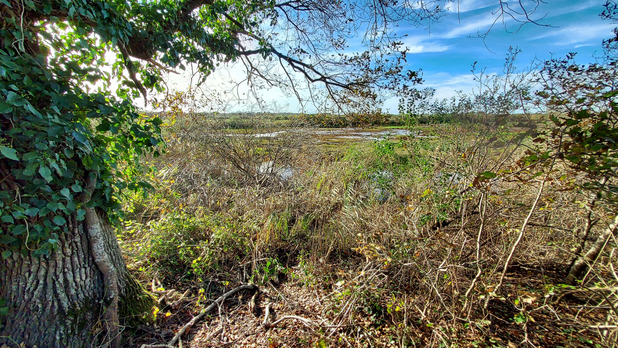 (…) En effet, notre randonnée prévoit de longer la l’Eyre, qui ayant largement débordé, nous oblige, à devoir contourner de nombreux passages inondés, au prix de difficultés et de nombreuses griffures de la carrosserie, par les ronces. Ces contournements à n’en plus finir, les pieds et mollets trempés, autant emprunter le sentier submergé, transformé par endroits en ruisseau à eaux vives ! …