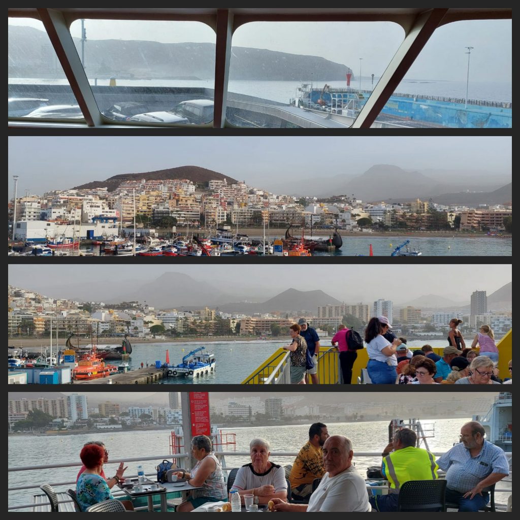 Embarquement sur le ferry au port de Los Cristianos destination le port de San Sebastian capitale de l’ile de la Gomera. 🙂