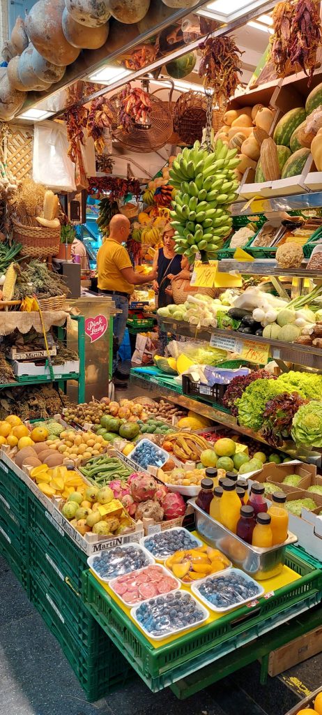 Marchés de Grande Canarie montrant l’étal typique : fruits, légumes, couleurs vives, grande variété.