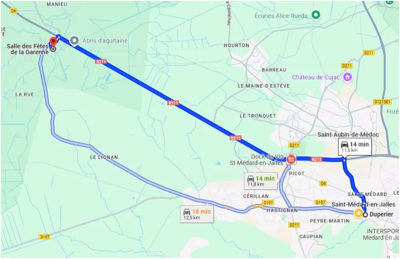 Novembre | 4 | Bati FE | Boucle urbaine - Parking Dupérier > Lycée Sud Médoc > chemin intercommunal Le Taillan / Saint Médard > Bois des sources > Retour par la piste cyclable pour le petit parcours. ~5 km Plaine des sports > Retour au parking Dupérier par le chemin des écoliers ! ~8 km 22 participants pour le grand circuit. 3 personnes sont rentrées par leur propre moyen par la piste cyclable. Beau temps soleil timide au démarrage, ensoleillé sur la fin du circuit. |