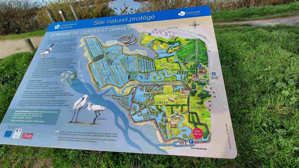 Le grand tour des domaines de Certes et Graveyron ne pouvant être fait comme voulu suite à des travaux de consolidation de digues, nous avons donc arpenté sous la fraicheur du matin la forêt de Lanton et fait le tour de Graveyron à marée haute pour l’observation des oiseaux, poules d’eau, canards et autres cygnes.