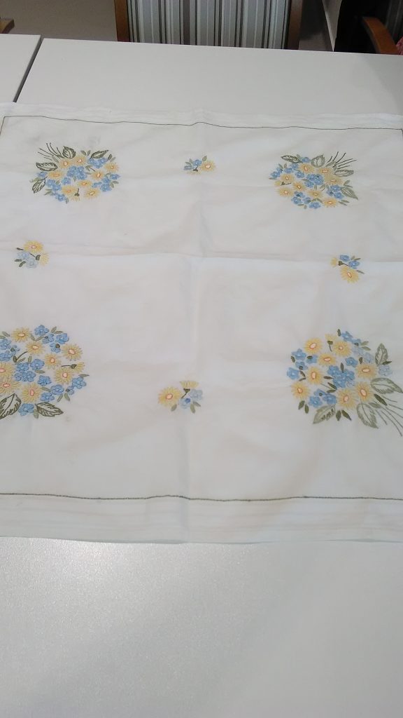 L’atelier broderie se réunit pour l’instant toutes les semaines, les mardis après-midi à partir de 14h jusqu’à 16h30 ou 17h selon les disponibilités de chacun. Rien d’imposé, chacun est libre de travailler sur l’ouvrage qui lui convient. Il y aura toujours quelqu’un ( les plus anciennes) pour donner des conseils si besoin. En ce moment, nous sommes dix et nous acceptons d’autres volontaires avec grand plaisir. Vous pouvez faire un essai pour vous rendre compte si cela vous convient. L’ambiance est bon enfant et il y a une bonne entente et une belle amitié dans le groupe.