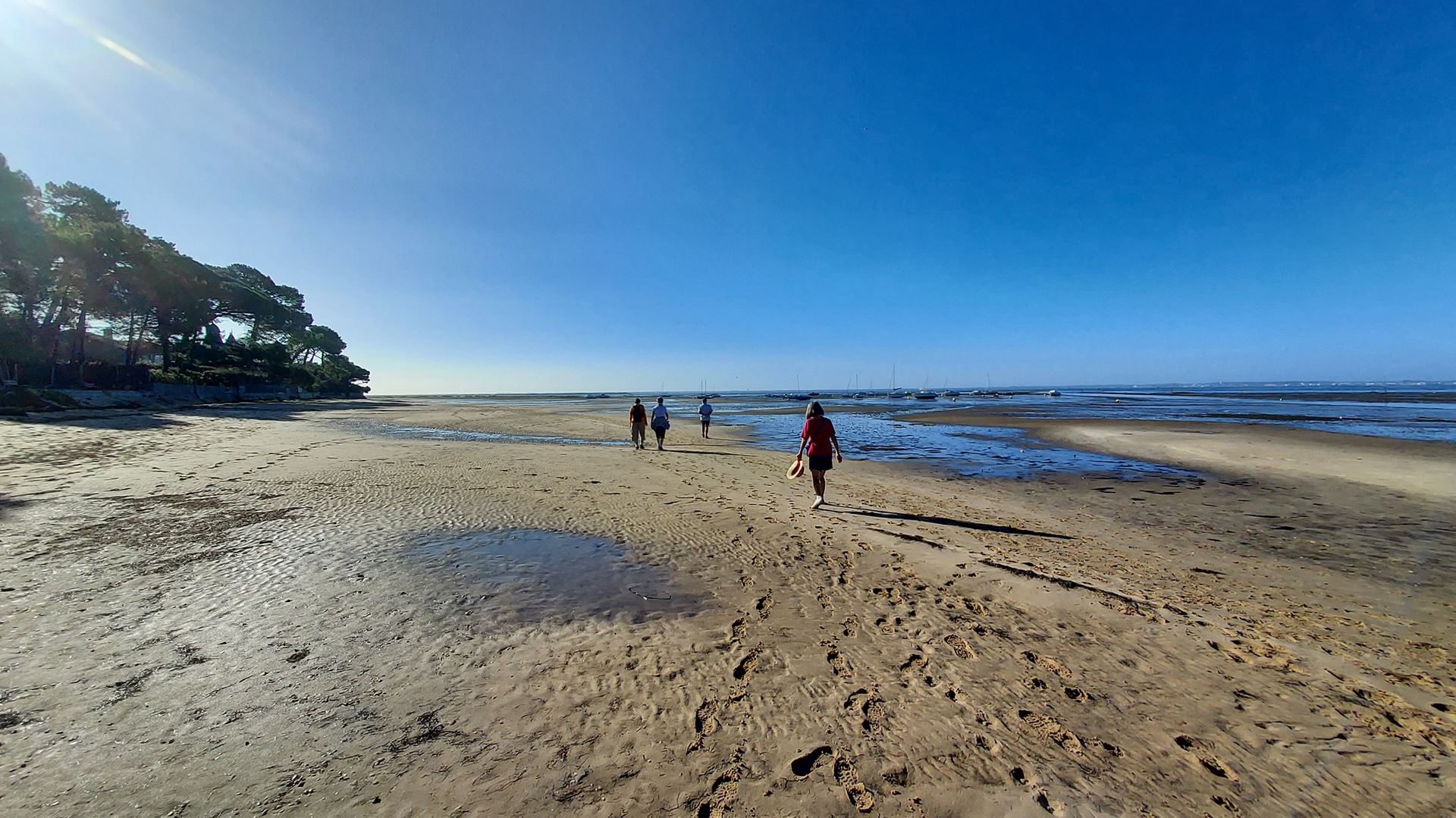 Le matin, départ pour une boucle de 7 km, direction le port de Taussat, retour par la plage à marée basse jusqu’au Port de Cassy.