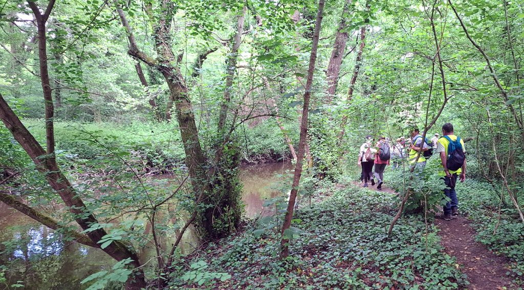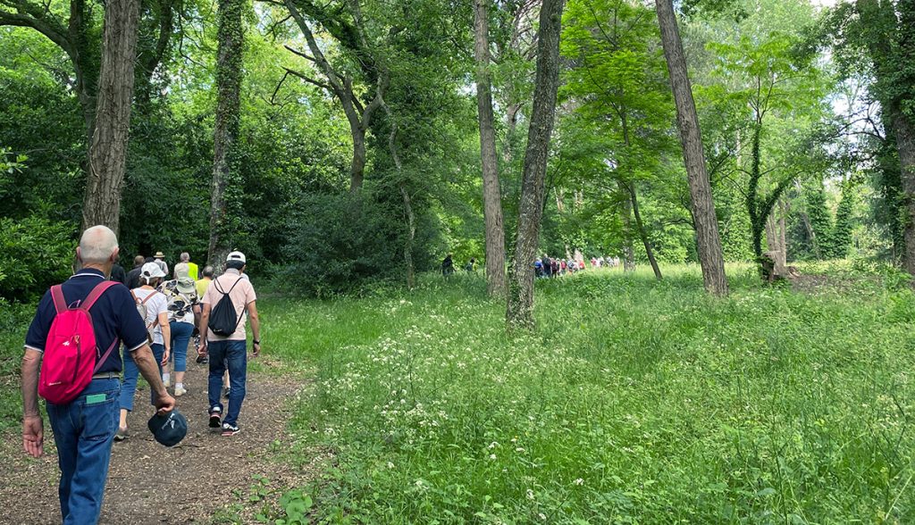 Jeudi 15 mai, c’est sous un ciel menaçant et au roulement du tonnerre que 51 marcheurs se sont retrouvés en bordure de la plaine des sports de Saint Médard en Jalles, point de départ de notre marche hebdomadaire.