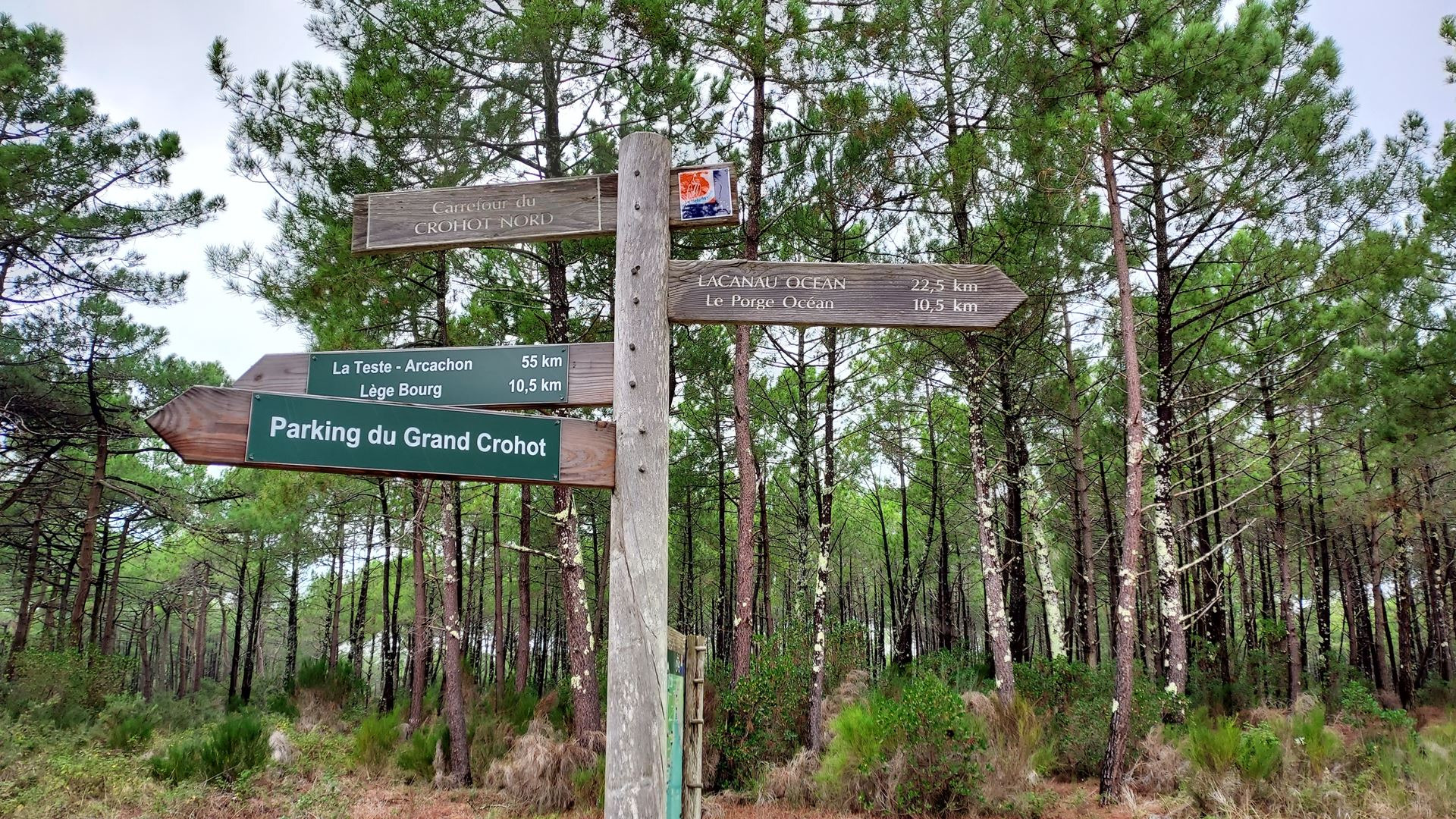 Ce samedi 21 octobre, 9 pèlerins ont bravé les intempéries au Grand Crohot *à Lège. Météo France nous assurait le matin d’une journée assez bien ventée mais sèche jusqu’en soirée. Le vent effectivement n’a pas manqué mais il n’était pas ressenti en forêt. Quant à la pluie, cette dernière nous a souhaité la bienvenue durant 5 à 10 minutes au départ de notre marche en forêt le matin puis très brièvement juste avant de mettre les nappes pour la pause casse-croute. Ensuite RAS jusqu’à ce que nous atteignons l’océan en début d’après-midi. Ce fut alors 5 km de plage parcourus par une petite brise, avec des rafales 50km/h de trois quarts, laquelle accompagnée d’une pluie fine intermittente nous cinglait le visage avant le retour en forêt avec soleil et ciel bleu. Sur la plage pas grand monde si ce n’est une patrouille de la gendarmerie maritime, et un groupe de marcheuses que nous avons croisé et un bon nombre d’adeptes du kitesurf très agréables à voir pratiquer qui s’en donnaient à cœur joie.