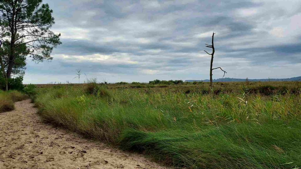 Ce samedi 21 septembre, 14 marcheurs ont bravé les intempéries annoncées, pluies et orages lors de notre sortie du côté d’Arès 17 à 18 km au total. Le matin, sous un ciel simplement nuageux, nous avons randonné à travers les prés salés d’Arès. L’après-midi, sous le soleil, ce fût, le long du bassin, direction Andernos pour une dégustation de glace par les gourmands. Ponchos et parapluies étaient restés jusque-là dans les sacs, mais lors de notre retour par la forêt, juste avant d’atteindre notre parking, un violent orage nous a copieusement arrosé durant une bonne vingtaine de minutes avant le retour du soleil, sans pour autant gacher notre bonne humeur !