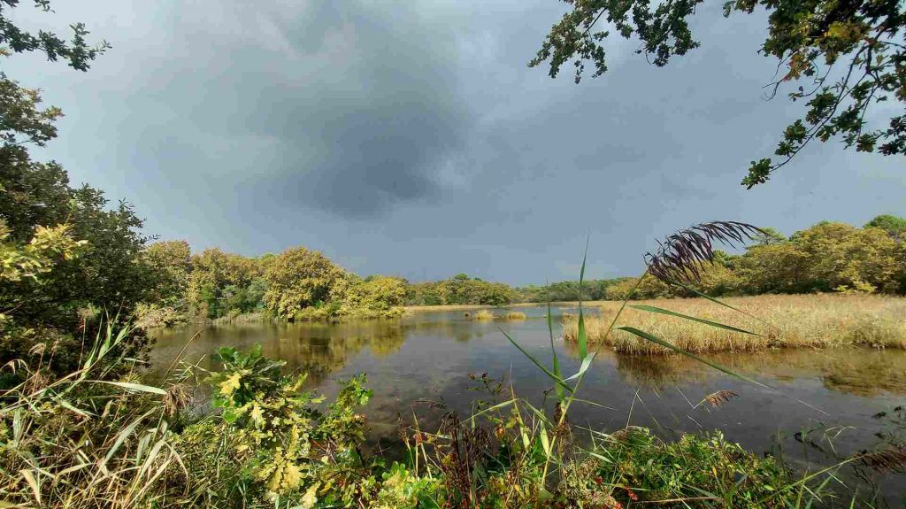 Ce samedi 21 septembre, 14 marcheurs ont bravé les intempéries annoncées, pluies et orages lors de notre sortie du côté d’Arès 17 à 18 km au total. Le matin, sous un ciel simplement nuageux, nous avons randonné à travers les prés salés d’Arès. L’après-midi, sous le soleil, ce fût, le long du bassin, direction Andernos pour une dégustation de glace par les gourmands. Ponchos et parapluies étaient restés jusque-là dans les sacs, mais lors de notre retour par la forêt, juste avant d’atteindre notre parking, un violent orage nous a copieusement arrosé durant une bonne vingtaine de minutes avant le retour du soleil, sans pour autant gacher notre bonne humeur !