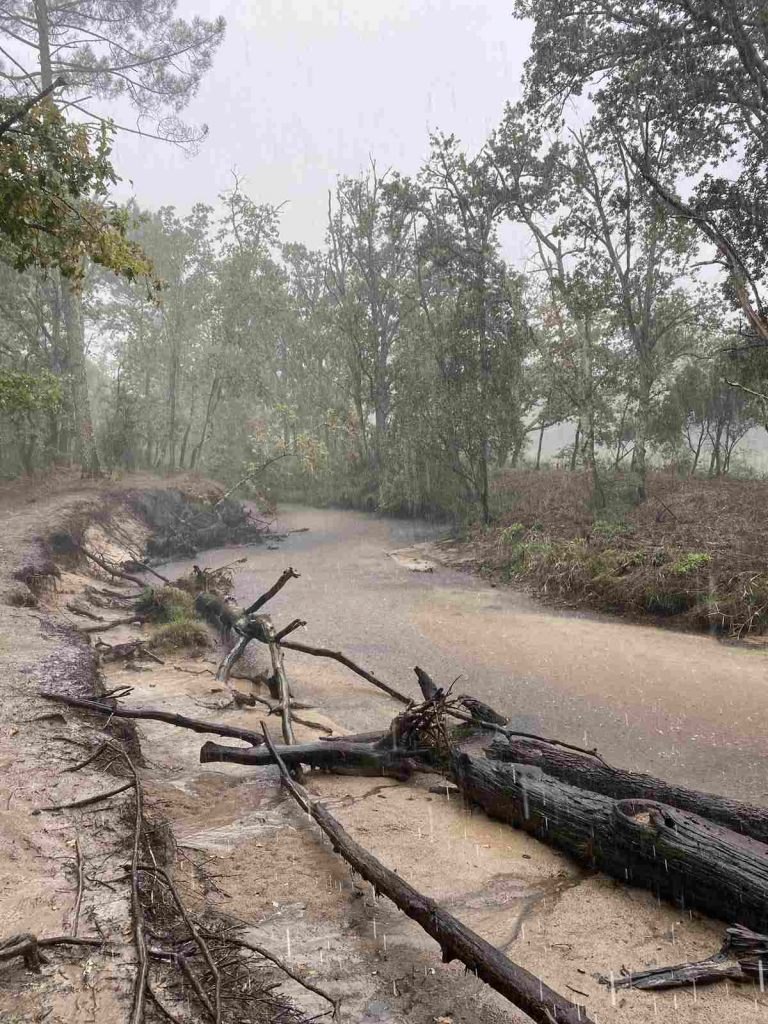 Ce samedi 21 septembre, 14 marcheurs ont bravé les intempéries annoncées, pluies et orages lors de notre sortie du côté d’Arès 17 à 18 km au total. Le matin, sous un ciel simplement nuageux, nous avons randonné à travers les prés salés d’Arès. L’après-midi, sous le soleil, ce fût, le long du bassin, direction Andernos pour une dégustation de glace par les gourmands. Ponchos et parapluies étaient restés jusque-là dans les sacs, mais lors de notre retour par la forêt, juste avant d’atteindre notre parking, un violent orage nous a copieusement arrosé durant une bonne vingtaine de minutes avant le retour du soleil, sans pour autant gacher notre bonne humeur !