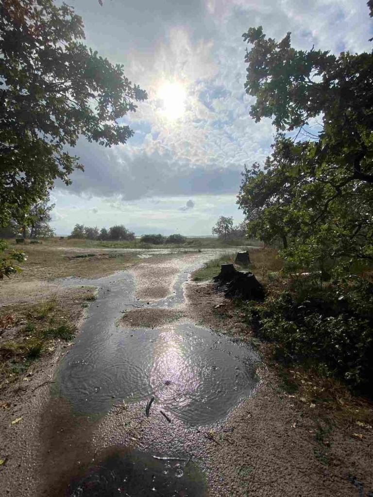 Ce samedi 21 septembre, 14 marcheurs ont bravé les intempéries annoncées, pluies et orages lors de notre sortie du côté d’Arès 17 à 18 km au total. Le matin, sous un ciel simplement nuageux, nous avons randonné à travers les prés salés d’Arès. L’après-midi, sous le soleil, ce fût, le long du bassin, direction Andernos pour une dégustation de glace par les gourmands. Ponchos et parapluies étaient restés jusque-là dans les sacs, mais lors de notre retour par la forêt, juste avant d’atteindre notre parking, un violent orage nous a copieusement arrosé durant une bonne vingtaine de minutes avant le retour du soleil, sans pour autant gacher notre bonne humeur !
