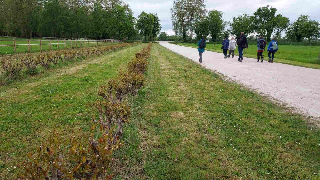 Le samedi 12 avril, une quinzaine de marcheurs MTT (marcheurs tous temps) et MTC (marcheurs toujours contents) se sont retrouvés à Margaux pour deux randonnées, au total quelques 22km dans le vignoble depuis le port d’Issan. Ce sera l’occasion de découvrir et d’admirer l’architecture de châteaux Grands Crus Classés de l’appellation Margaux ( Issan, Kirwan, Margaux, Zigler, Palmer, Marquis de Terme, Rauzan Ségla, Rauzan Gassies, Lascombes, Kirwan….. ) ainsi que de belles façades en pierres de maisons très anciennes. La pluie, presque absente, a eu la bonne idée de se faire discrète, permettant à tous de profiter pleinement de cette belle journée de marche et de découvertes.
