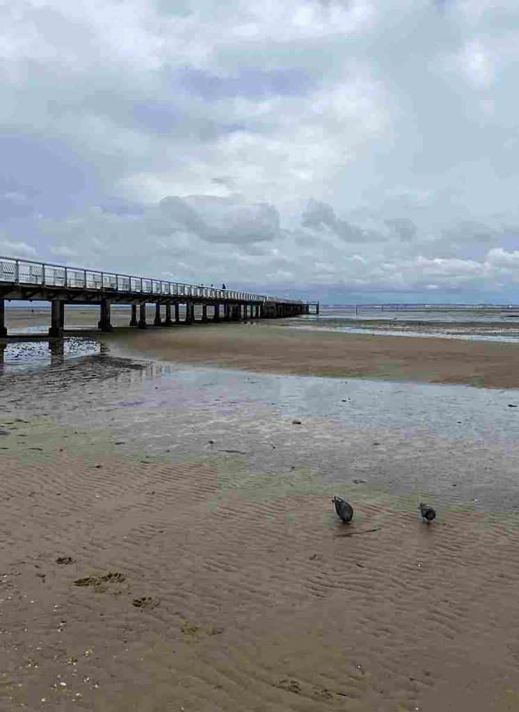 Le groupe a ensuite atteint la jetée, où ils ont pu observer le paysage du bassin à marée basse.