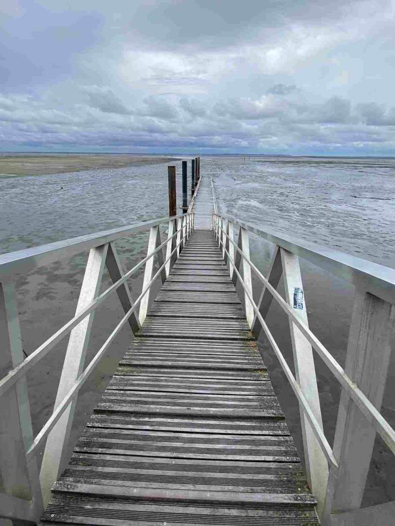 Le groupe a ensuite atteint la jetée, où ils ont pu observer le paysage du bassin à marée basse.