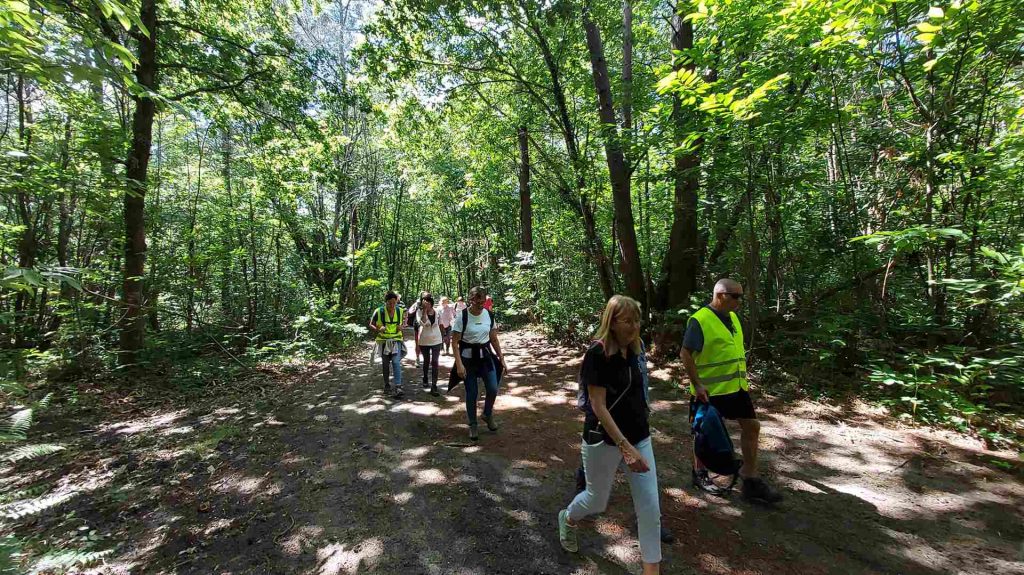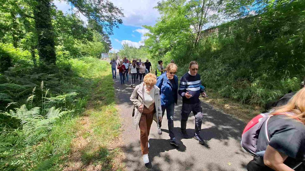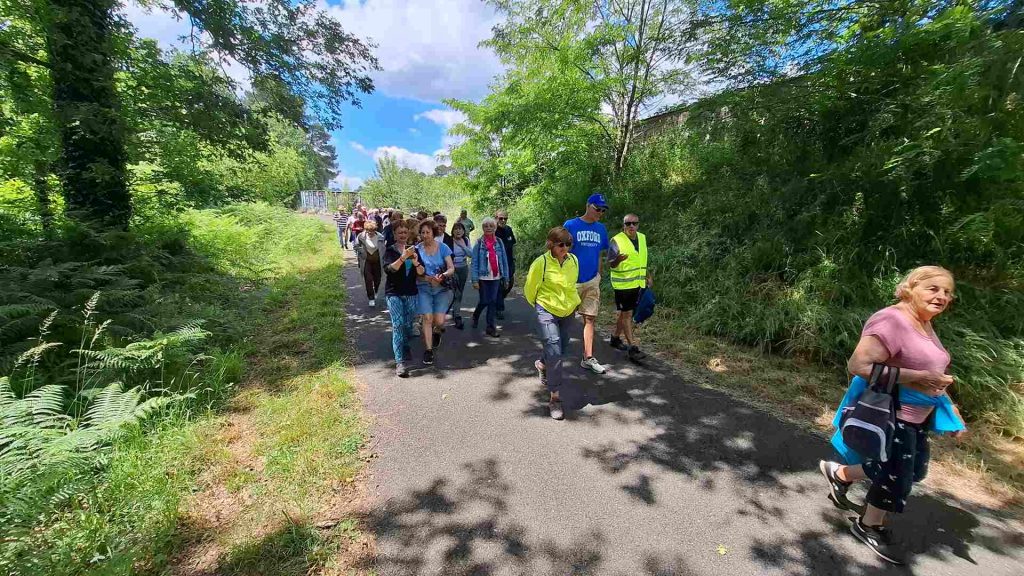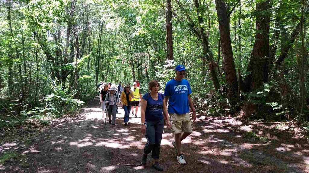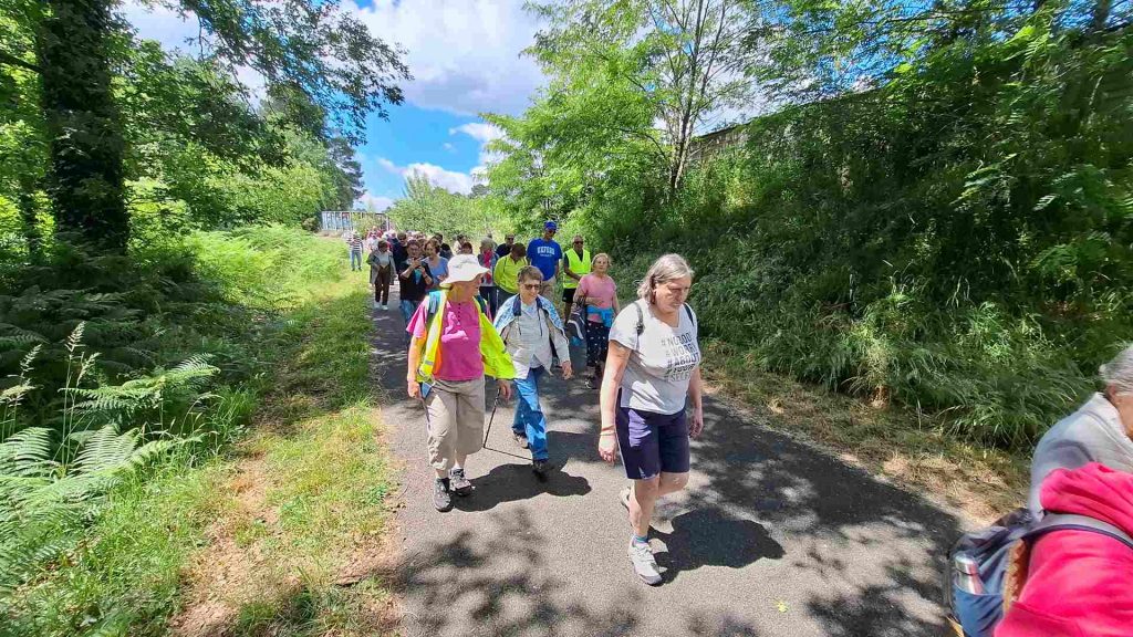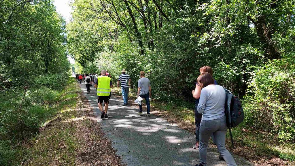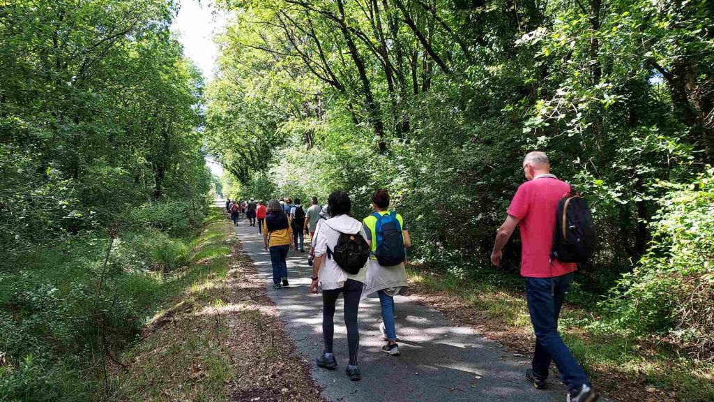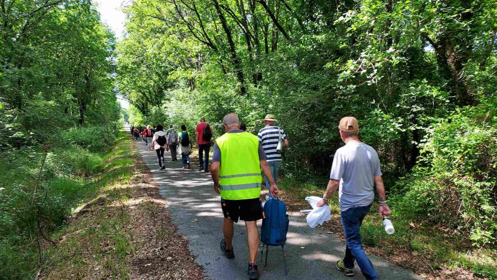 Le groupe des marcheurs sur la piste cyclable du Médoc Bleu…