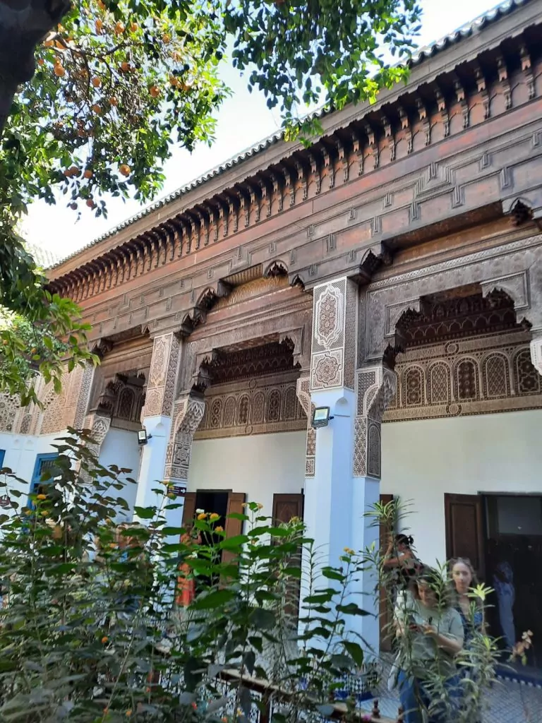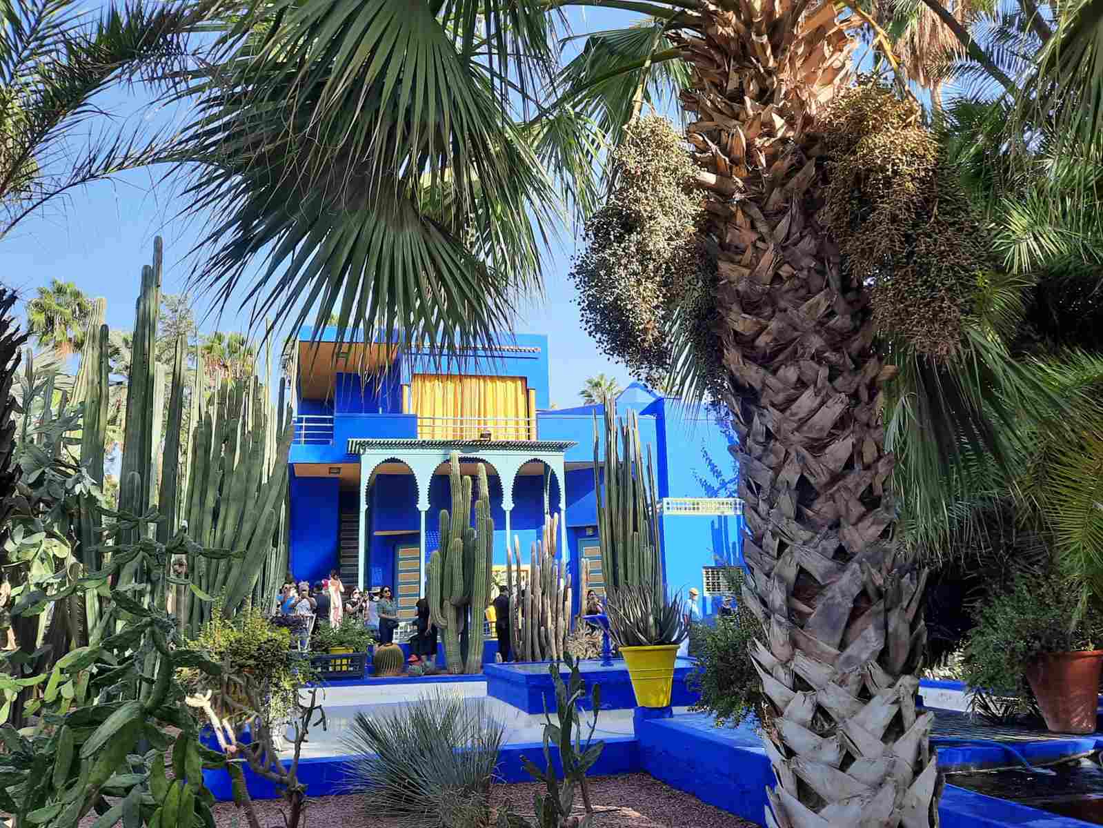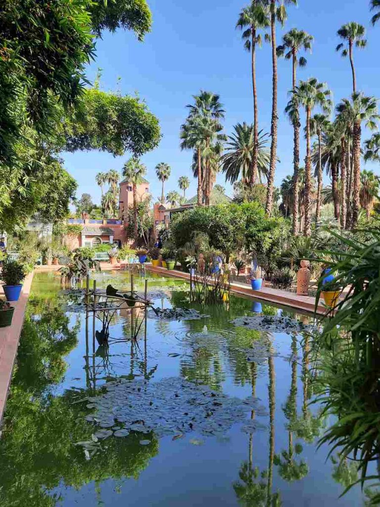 Les premières visites nous plongent dans une atmosphère paisible avec les jardins de la Ménara, havre de paix au pied de l’Atlas et les jardins Majorelle, écrin de verdure créé par l’artiste français Jacques Majorelle puis racheté par Pierre Bergé et Yves Saint laurent.Des essences rares se mêlent aux cactus, palmiers, bambous et bougainvilliers dans une harmonie apaisante où le bleu des poteries et des murs apportent une touche colorée dans ce dégradé de vert.