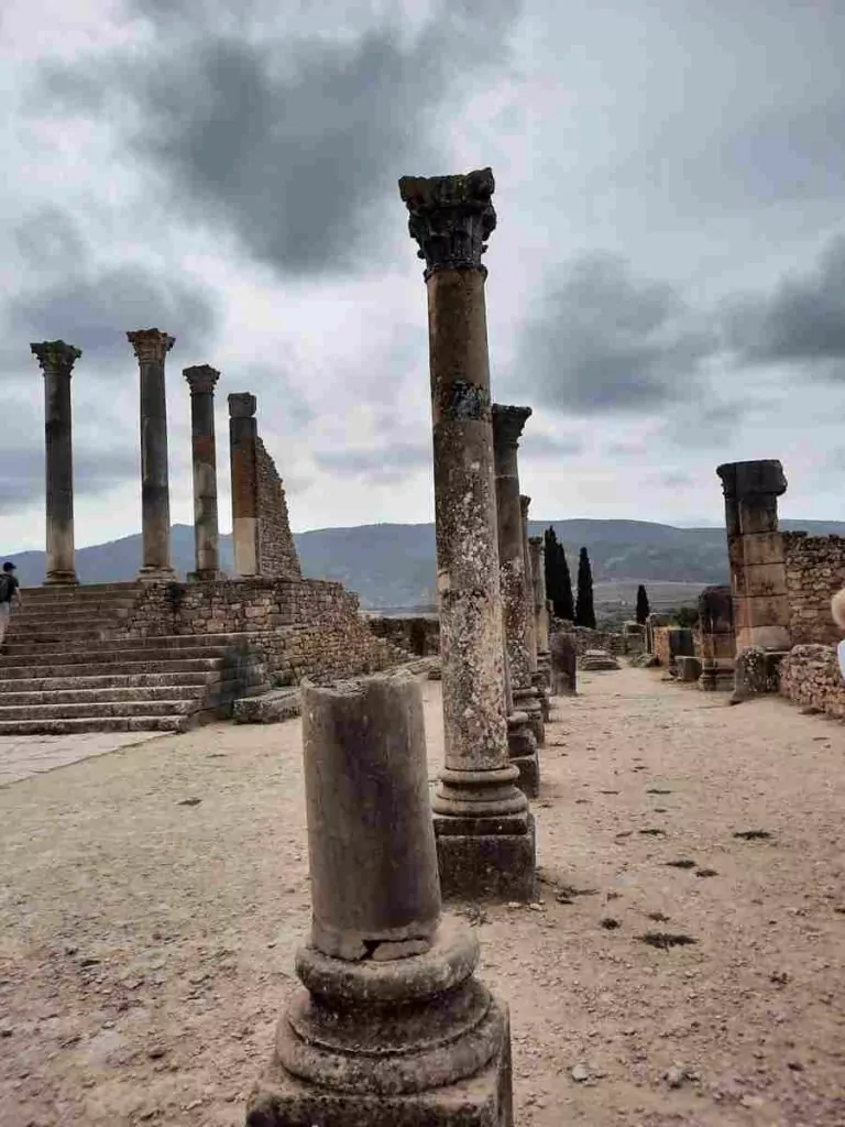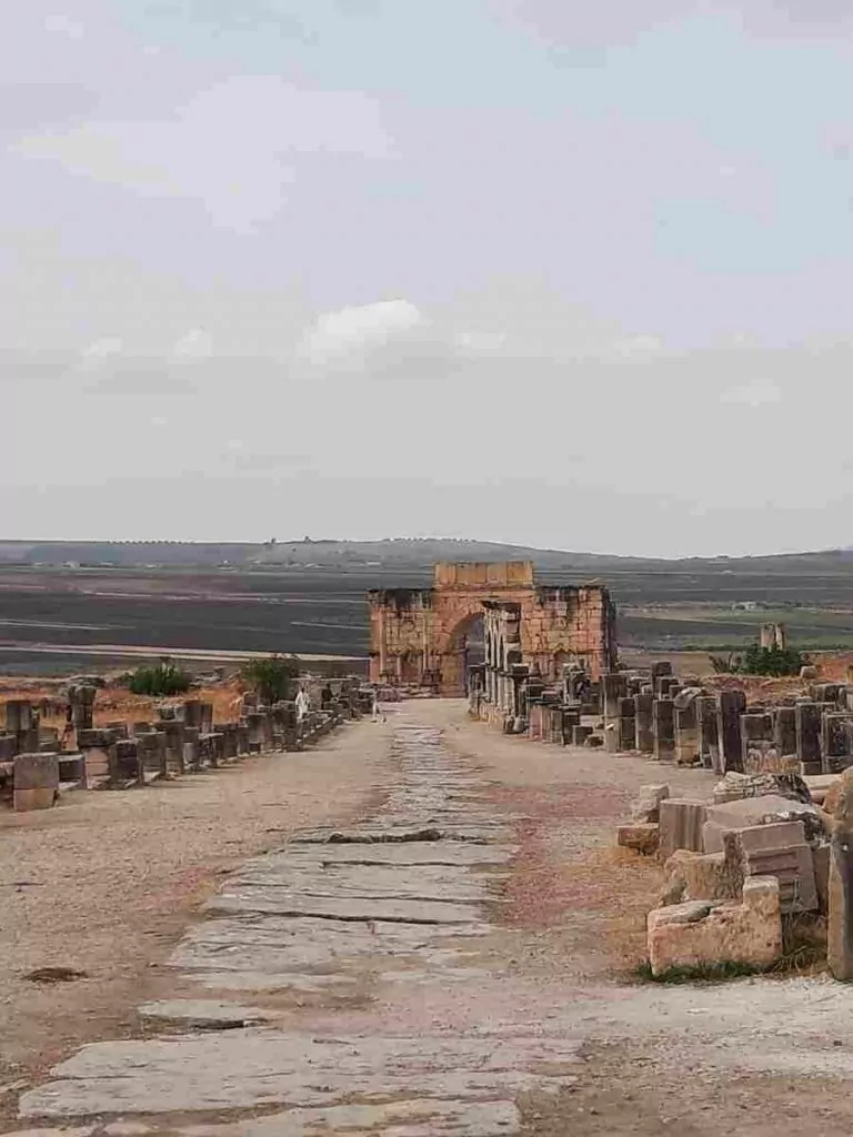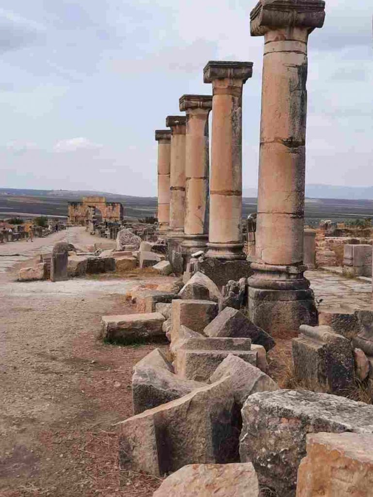 VOLUBILIS, ville fondée au IIème siècle av.J-C, classée au Patrimoine mondial de l’Unesco, et visite des ruines romaines, superbes. Quelques vestiges évocateurs de l’époque ont résisté au séisme qui anéantit Lisbonne en 1755 et détruit les quelques monuments épargnés par le temps . On peut cependant y voir son capitole, son arc de triomphe, ses thermes, sa basilique et son artère principale ainsi que des vestiges de villas aux précieuses mosaïques plutôt bien conservées.