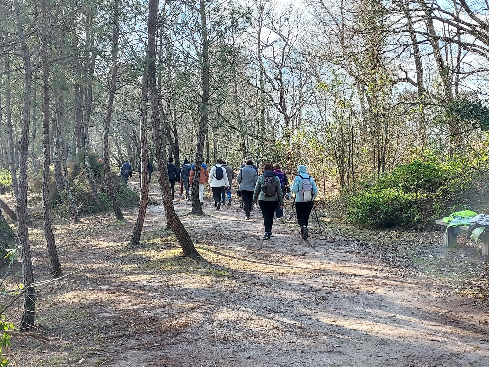Exceptionnellement un rendez vous à 13 h 30 était donné sur le parking Dupérier, pour un covoiturage vers le parking de la forêt du Bourgailh. 29 participants à cette marche sur le domaine de la forêt du Bourgailh, sous un agréable soleil d’hiver.