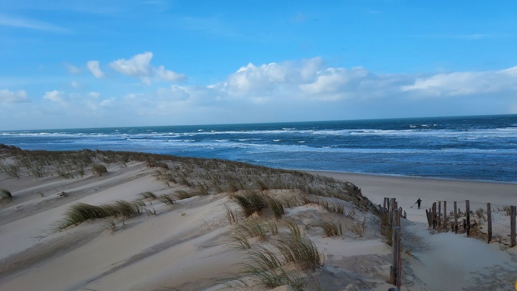 Le matin, depuis la longe du Mimbeau direction l’océan où nous trouvons une plage immaculée, et une forte érosion dunaire avec un coefficient de marée de 100.