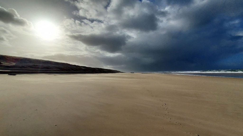 ... plage immaculée, balayée par le vent...