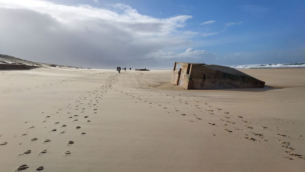 Le matin, depuis la longe du Mimbeau direction l’océan où nous trouvons une plage immaculée, et une forte érosion dunaire avec un coefficient de marée de 100.
