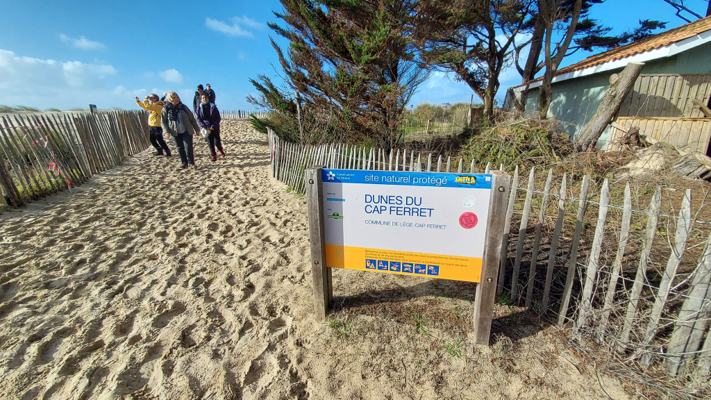 Le matin, depuis la longe du Mimbeau direction l’océan où nous trouvons une plage immaculée, et une forte érosion dunaire avec un coefficient de marée de 100.