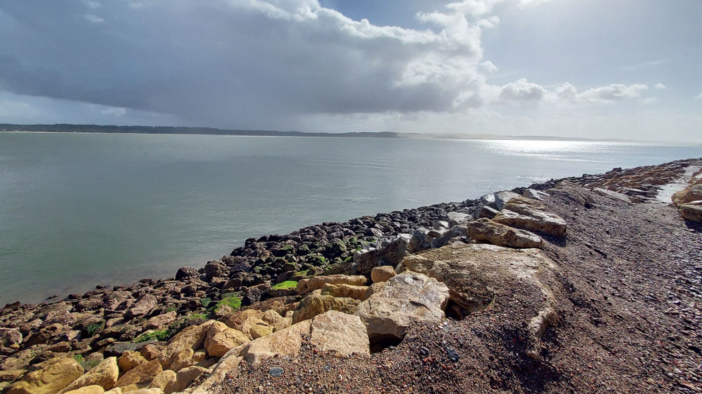Sur le chemin abécédaire du retour, nous attendent les mimosas en fleurs. La digue des 44ha réaménagée et ré-ouverte aux piétons en 2022 est à nouveau fermée suite à de récents éboulements dus aux attaques de la mer.