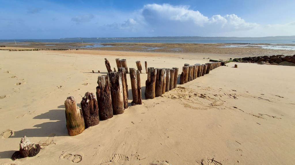 Le matin, depuis la longe du Mimbeau direction l’océan où nous trouvons une plage immaculée, et une forte érosion dunaire avec un coefficient de marée de 100.