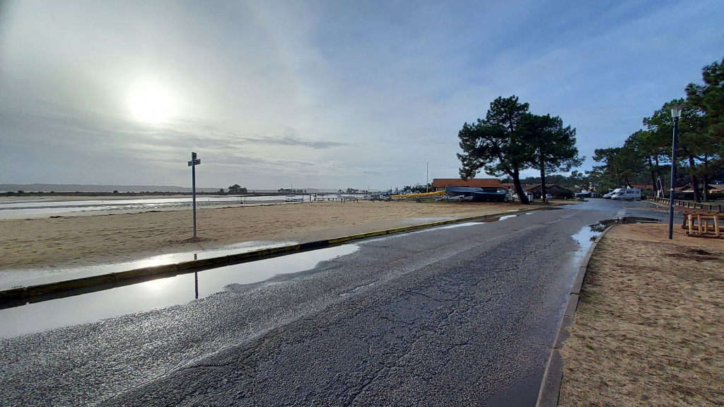 Le matin, depuis la longe du Mimbeau direction l’océan où nous trouvons une plage immaculée, et une forte érosion dunaire avec un coefficient de marée de 100.