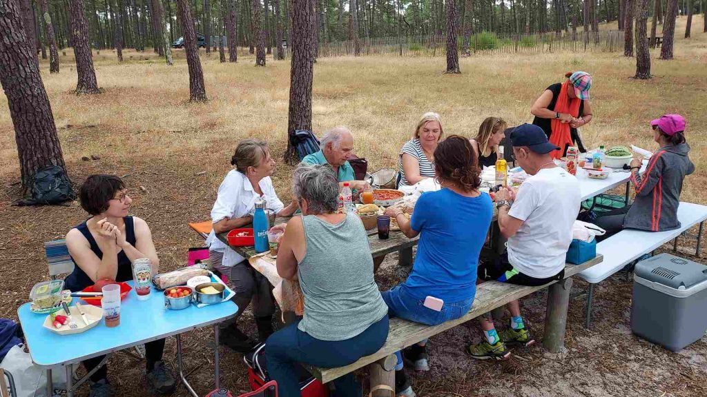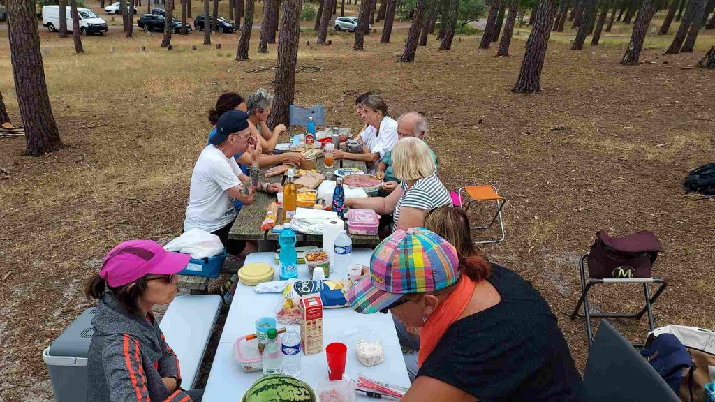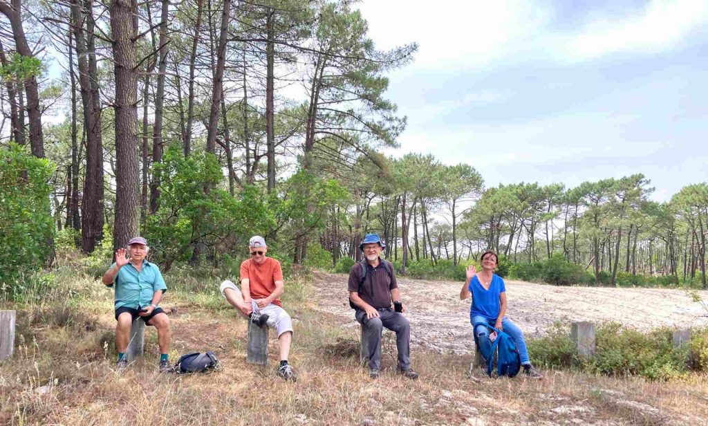 Pour cette dernière sortie de la saison, les marcheurs à la journée se sont donné rendez-vous du côté des plages sud de Lacanau. Le programme de la matinée proposait un parcours de 11 km, véritable concentré de pistes cyclables serpentant à travers la magnifique forêt de pins de Lacanau. À la mi-journée, la pause casse-croûte, bien méritée, s’est déroulée sous les pins, confortablement installés aux abords du parking des plages du Lion. Requinqués, nous avons ensuite repris notre itinéraire en rejoignant le littoral. Un petit franchissement de dunette nous a permis d’accéder à la plage, puis de longer le bord de mer jusqu’à la barrière sud. C’est là qu’une dernière dune, un peu plus exigeante, nous attendait pour nous faire basculer à nouveau dans la forêt et regagner notre point de départ. Au total, cette belle boucle a compté près de 12 km. Sous un soleil radieux et avec une température idéale, les deux ingrédients essentiels à la réussite de nos randonnées, cette journée s’est révélée tout simplement parfaite. Une excellente façon de clôturer la saison en beauté ! Dominique