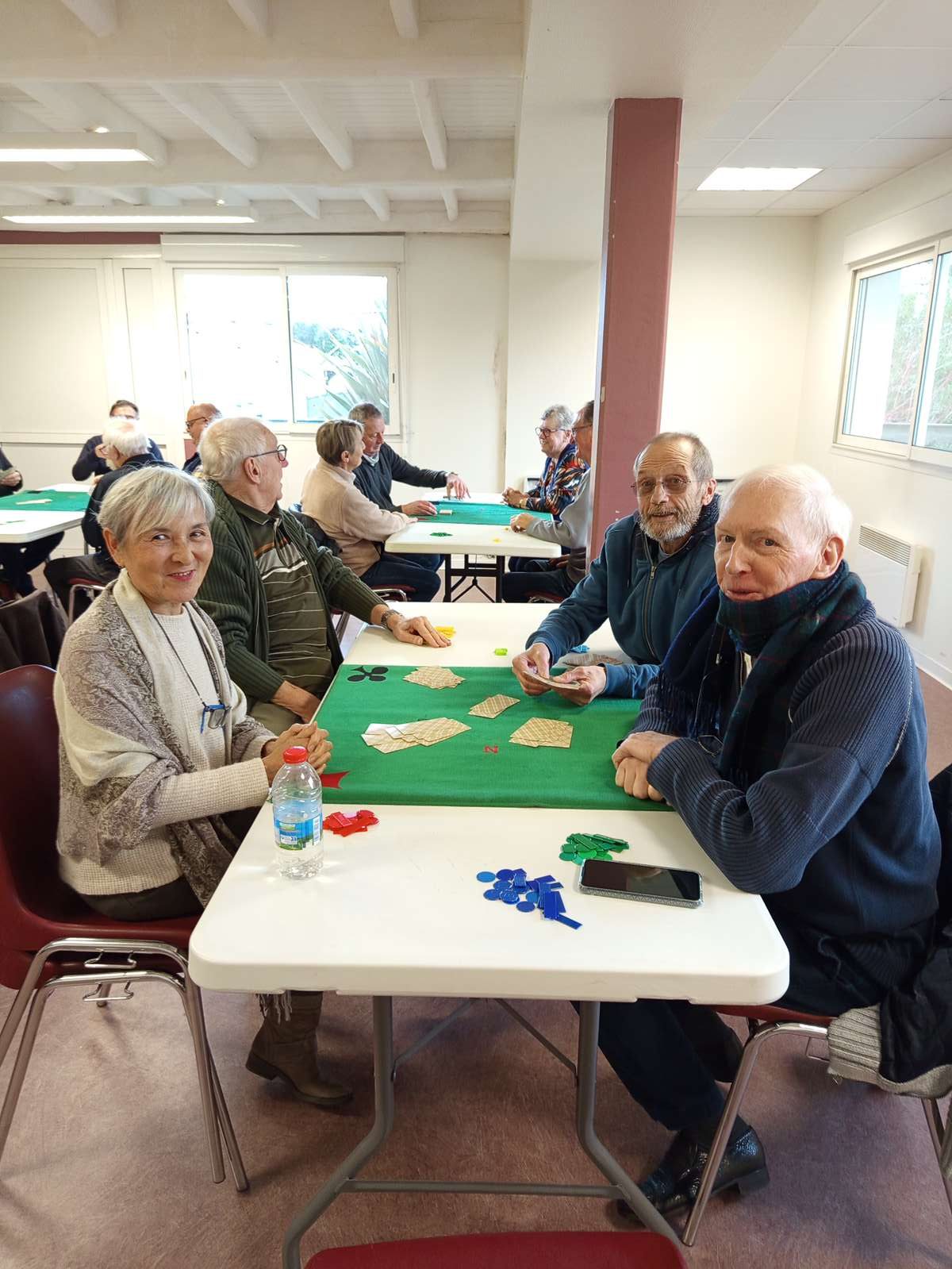 Le mardi 4 février 2025, notre concours de tarot s’est déroulé dans une ambiance conviviale et chaleureuse. Suivant le règlement officiel, nous avons joué sur quatre tables de quatre joueurs, soit 16 participants pour les parties classiques.