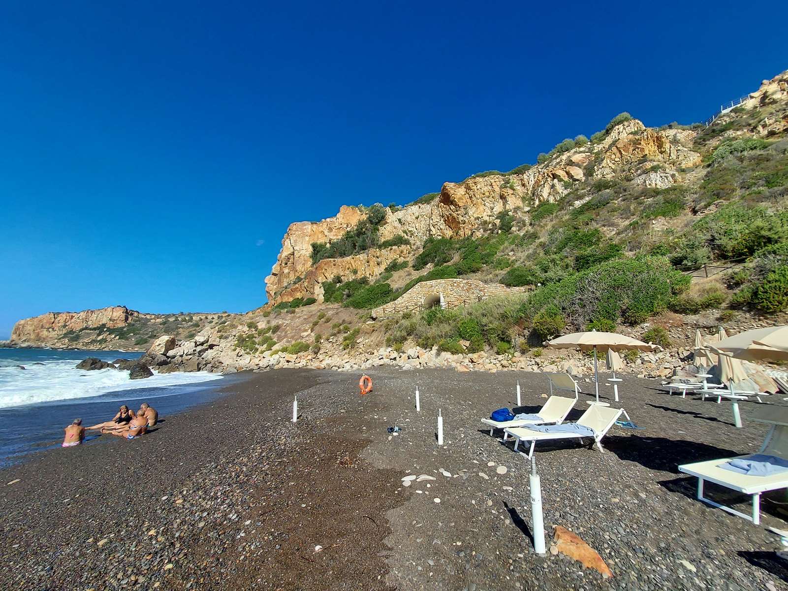 Plage de petits galets noirs >