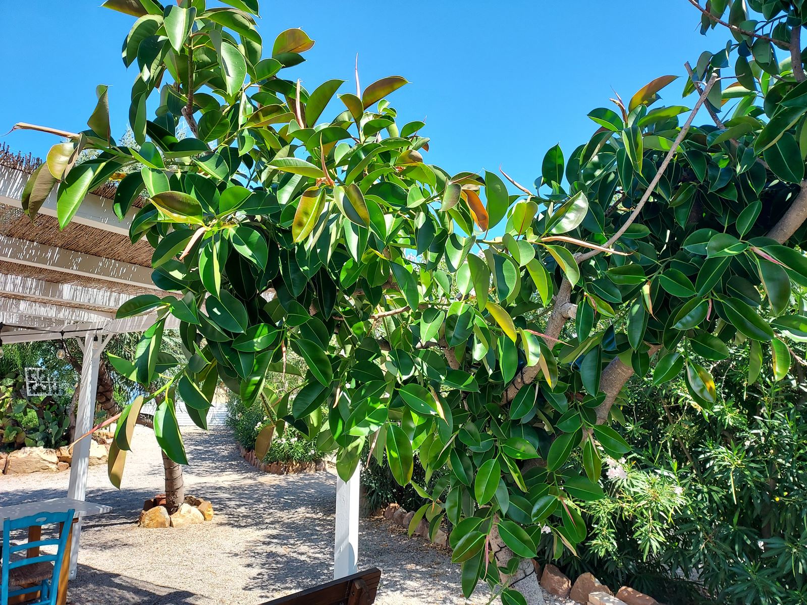 Les arbres à caoutchouc sont à l'extérieur >