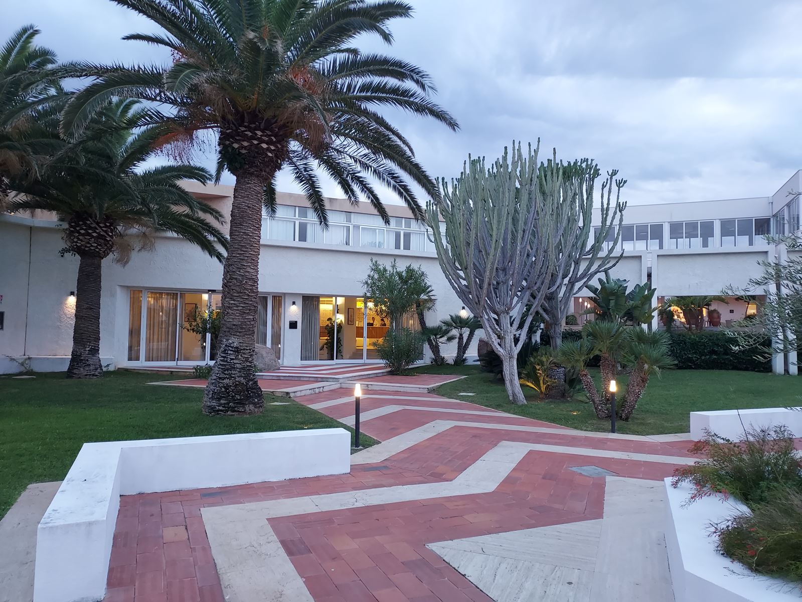 Découverte du patio intérieur, avec ses collections de cactées, Cycas, Phoenix et autres ...