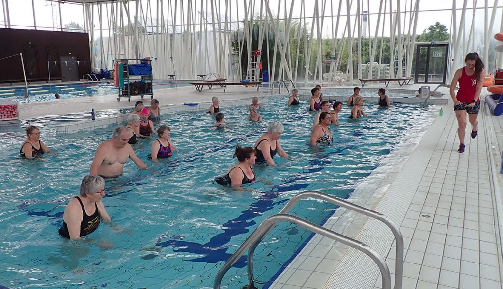 En ce mardi 6 mai, c’est Kathleen qui était chargée d’animer le cours d’aquagym.