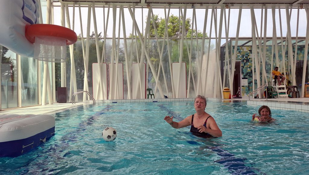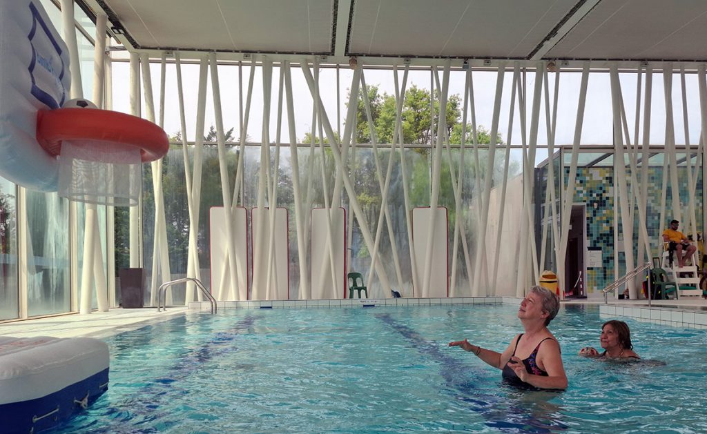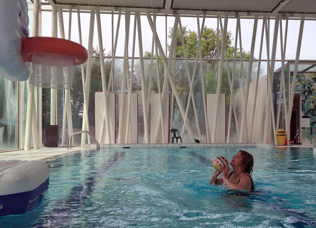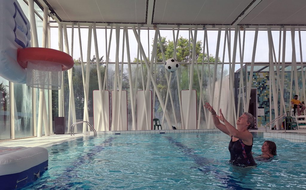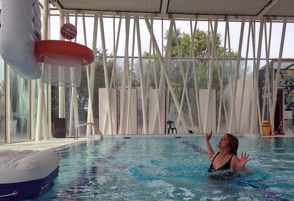 Voici quelques lignes relatant la séance d’activités aquatiques du 2 mai. Celle-ci se déroulant pendant les vacances scolaires, aucun cours d’aquagym n’était programmé. De ce fait, des adhérents ont enchainé les longueurs dans le grand bassin, d’autres se sont détendus dans le bassin à bulles. Pendant ce temps, Cécile et Marianne, profitant de la présence d’un panier de basket flottant, se sont adonnées aux joies du lancer de ballon. Cette opportunité, exceptionnelle pour les amitiés, méritait bien quelques photos.